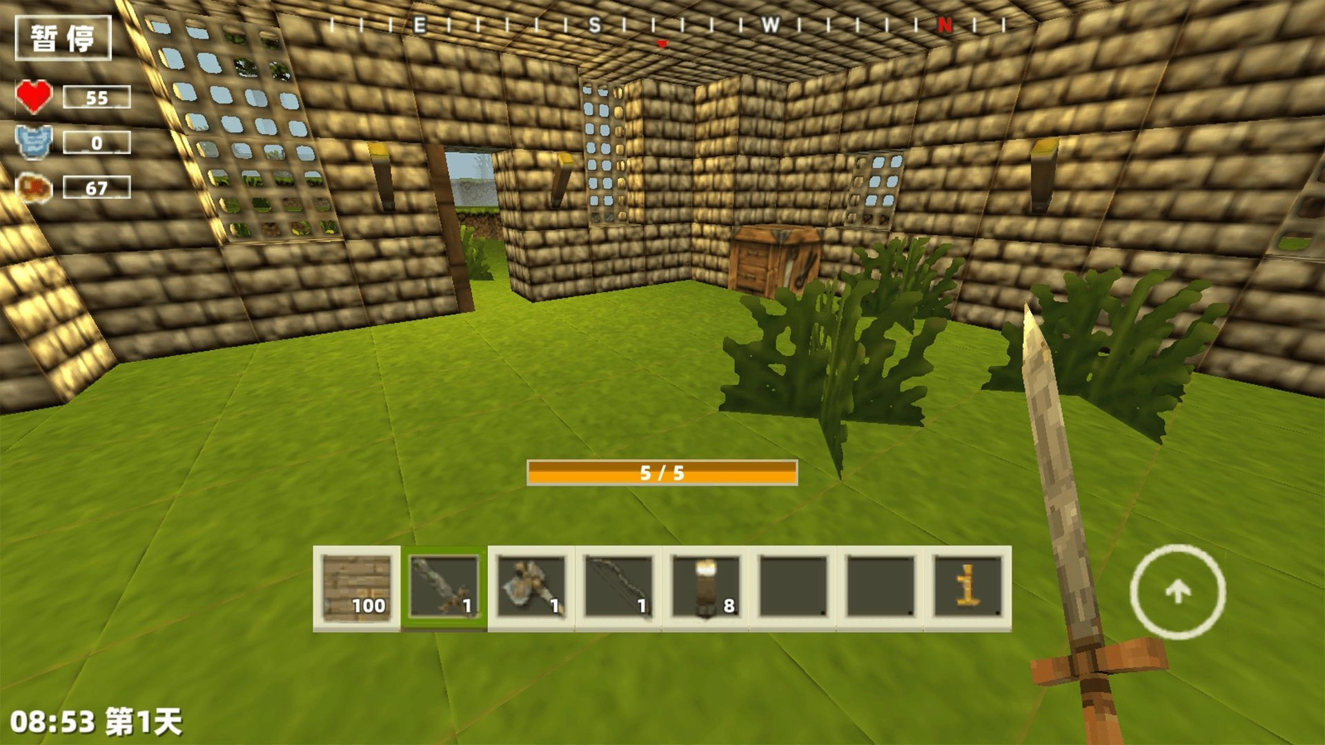 2.起初仅能依靠双手收集材料,待资源逐渐充裕后,便能够打造诸如木器之类的武器。