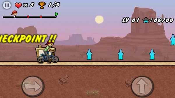 在加速时需留意,因为自行车是以脚蹬来助力的,所以加速得连续点击才行。这对跨越一些间距较大的障碍颇有益处。另外,游戏在不同位置设置了存档点,经过时便会自动存档。但要知道,挑战机会有限,务必好好珍惜!