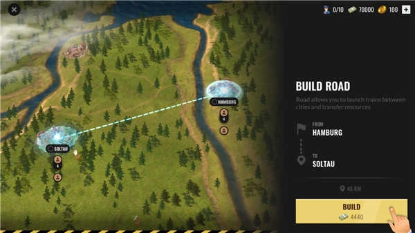 1在游戏刚开始的时候,你得亲自创立一家属于自己的铁路企业。而开启运营的首要步骤,就是修筑一条连接两个城镇的基础铁路线。只要点击轨道图标,就能进入建设模式。