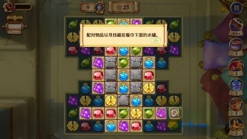 3、通过物品配对,找出藏在餐巾下方的水罐,进度将在页面上方呈现。