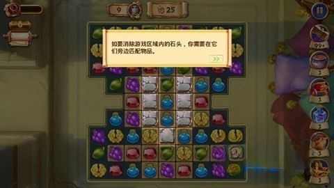 4、若要清除区域内的石头,需在石头旁边开展物品匹配操作。