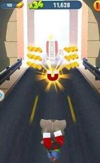 如何在短时间内收集到更多金条呢?方法很简单,使用“磁铁”这一道具,就能将界面里所有金条“吸”过来。所以,只要当前前进路线上没有大型障碍物,玩家即便不变道也能收集到大量金条。然而,和头盔一样,磁铁也仅能在规定时间内发挥功效,玩家可通过升级角色的“磁铁持续时间”属性,获取更持久的“吸金”效果。