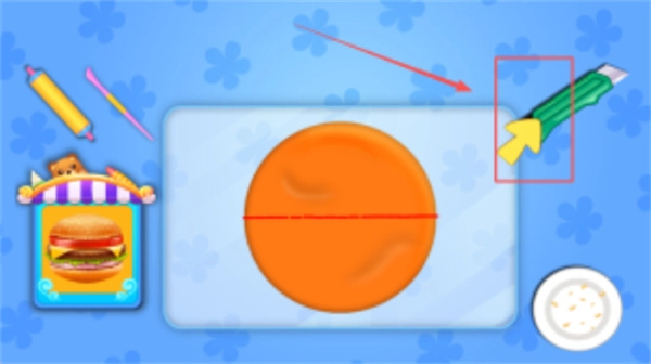 4、进入制作页面后,按照箭头所指方向,选取绿色美工刀,逐步进行切割操作,以便沾取黏土。