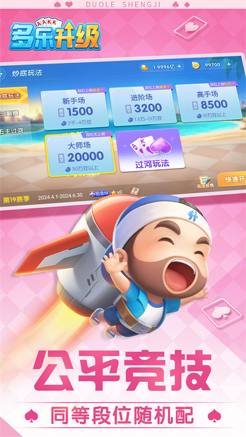 多乐升级完整版是一款趣味十足的扑克玩法。升级玩法别称众多,像双升、拖拉机、80分、炒地皮、摔小二、五十K 等。在此,玩家不仅能在丰富多元的各类模式里自由挑选,随时随地开启匹配,还能够与好友联机,尽情畅享升级带来的乐趣。