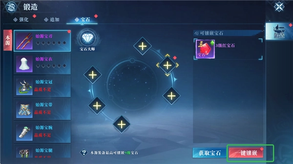 把宝石镶嵌进装备里,能够提高装备的攻击力,进而增强战斗力。