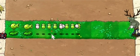 3、观察鹿头钢管僵尸的攻击频率,大致为发射两次豌豆后射出一次白色子弹。我们可以利用这一攻击间隔,放置肾虚射手与烧杯葵,接着用咖啡豆激活肾虚射手,让其迅速攻击烧杯葵,借此获取一定数量的阳光。