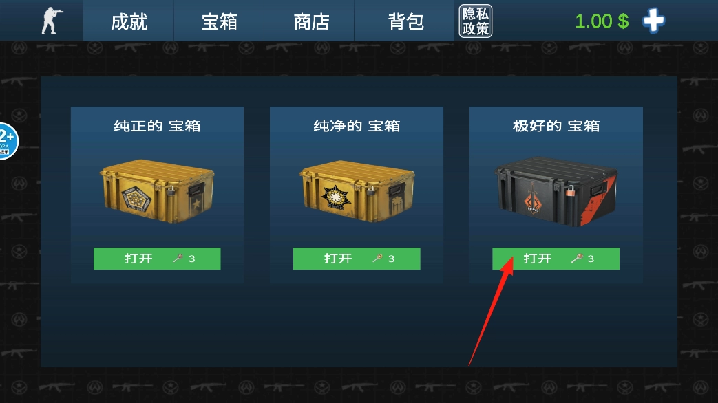 3、自由尝试多样玩法:这里有众多开箱玩法任你自由体验,不仅能考验运气,还能参与各类箱子抽奖活动。在这个过程中,玩家可以轻松解锁更多武器与皮肤,丰富的玩法使玩家持续收获惊喜,沉浸其中无法自拔。