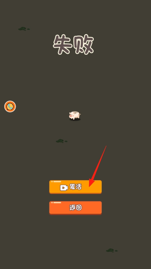 3、倘若不幸被抓住,出现失败界面,若还想继续玩,点击复活按钮,观看一则广告,老板猪便能重新起跑,接着继续挑战。要是不想看广告,那就点击返回,重新选择模式开始,再次尝试溜走的操作。