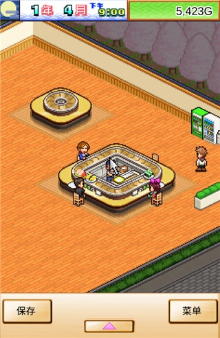 进入游戏后,大家就能看到充满开罗游戏风格的像素画面,是不是觉得很新奇呢?不过要提醒一下,小编自己的《海鲜寿司物语》存档目前是28年9月,游戏里现在展示的各种摆设和布局,在新手阶段都是没有的哦。如果您是第一次玩,刚进入游戏时,只会拥有一些最基础的设施。