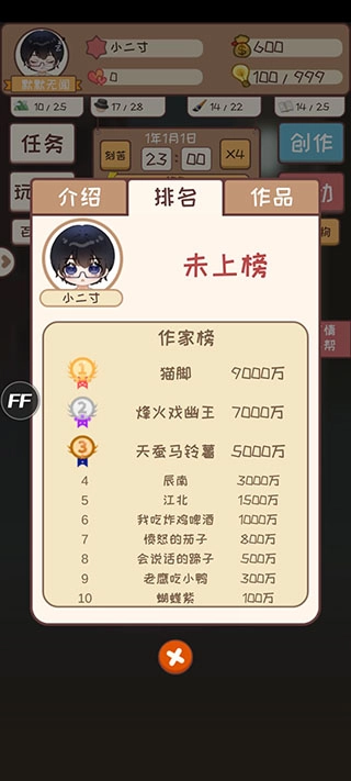 成就感满满:持续连载能解锁影视改编、票房分成、奖项评选等机会,让你沉浸式体验小说家从籍籍无名到声名远扬的完整历程。