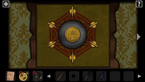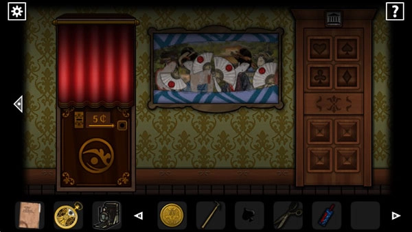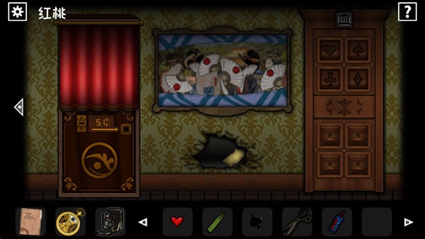 使用相机观察骷髅图像、密码画,获取剪刀与黑桃。