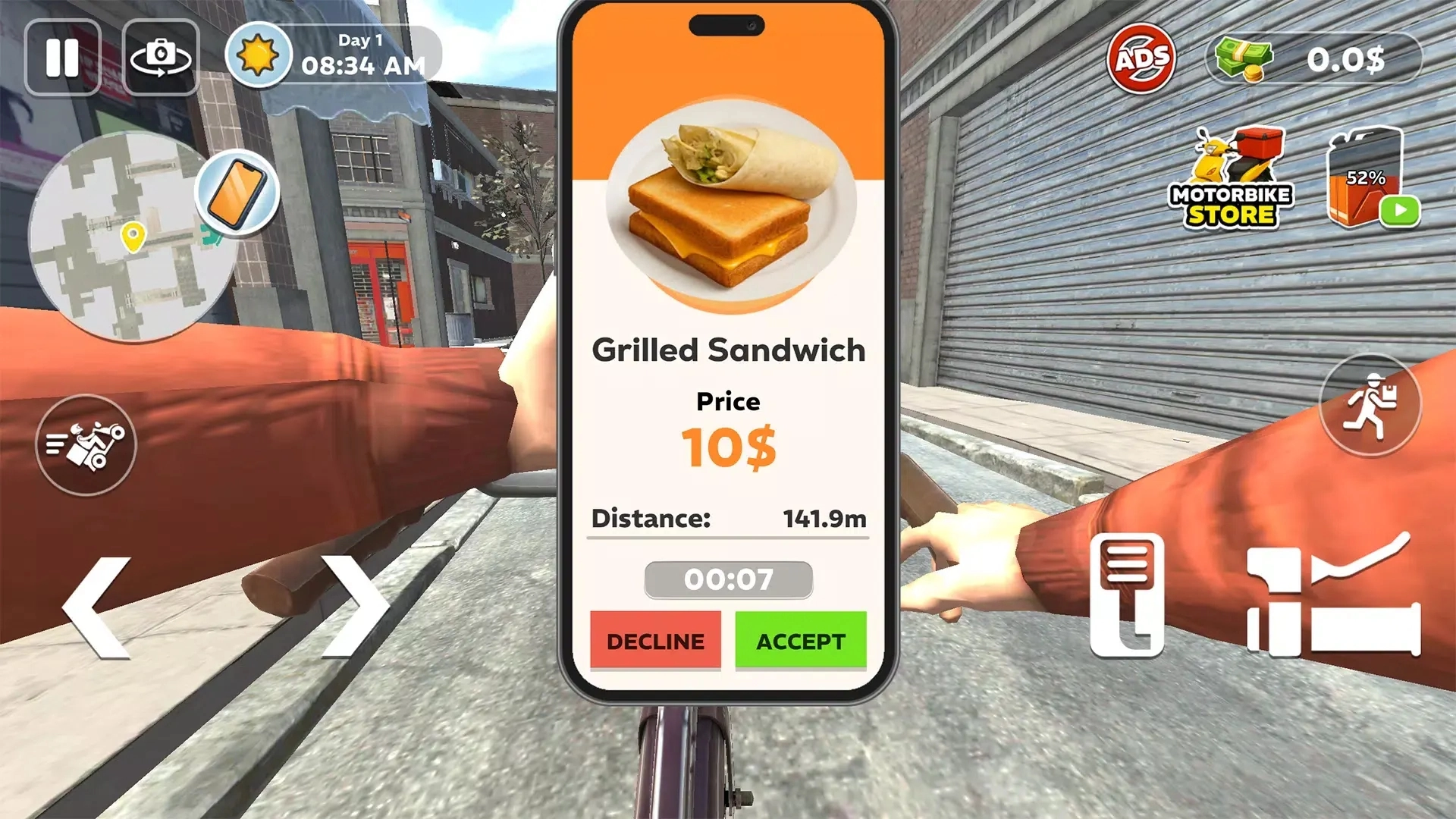 《送货到黎明》是一款还原度极高的外卖配送模拟游戏。在游戏中,玩家将化身外卖配送员,承接来自各类顾客的订单任务。需要在规定时间内将外卖精准送达指定地点,不仅要保证配送的时效性,还得尽量避免运输过程中的颠簸,毕竟配送服务的质量好坏,会直接关系到顾客给出的评分高低。