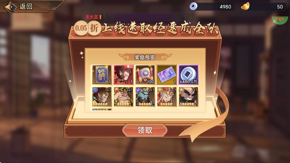 游戏初始福利大放送!不仅能直接获得取经路上的全部核心神将,还有专属天命人外观装扮,以及100次高级招募机会、价值648元的充值抵扣券、6480万游戏货币,更有一个大幅提升属性的尊贵称号等你来拿。