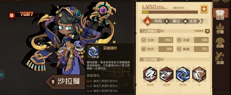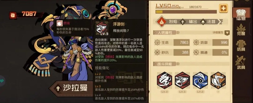 沙拉曼的被动能提升自动技的触发频次,当队友发动自动技能时,有机会召唤浮游剑进行额外攻击。