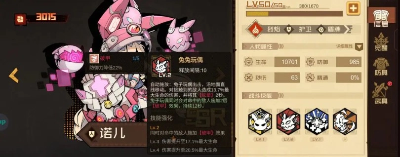 在对抗激烈爆发的战斗中,有一位护卫型角色展现出极强的生存能力,其终极技能能提供长达四秒的无敌状态,可轻松抵御BOSS的强力技能爆发而不受伤害。该角色的自动技能附带破甲效果,这一特性使其在应对高威胁单体BOSS时表现出色。为了更好地发挥其能力,需要重点提升充能速度,以便在关键时刻手动释放大招来化解致命伤害。