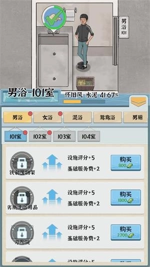 点击页面下方最左侧的按钮,即可对浴场进行升级操作,升级后还能解锁多种装饰类物品。