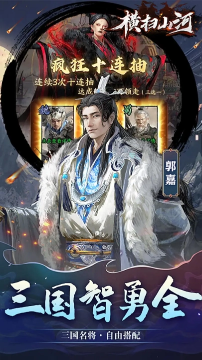 横扫山河安卓版以三国时代为背景,玩家可招募并升级各类三国名将卡片,组建专属的无敌之师。每张卡片对应一位拥有独特技能与属性的三国角色,游戏采用回合制玩法,玩家需在每一轮中制定策略,率领军队展开战术对决。
