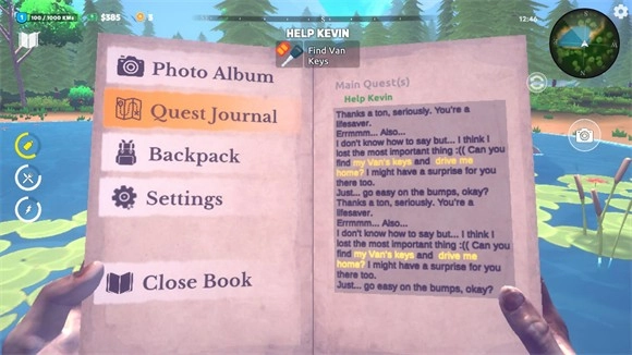 点击左上方的书本图标,即可查看已拍摄的照片、当前的主线任务以及背包内的物品。