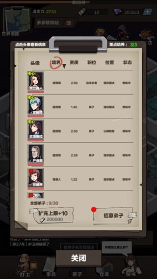 游戏的核心玩法在于招募资质优异的弟子为你效力,无论是对他们进行培养,还是派遣执行各类任务,都离不开弟子这一关键媒介。