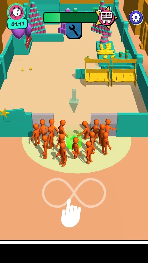 在商场中不断的奔跑吞噬其他小人升级你的队伍;