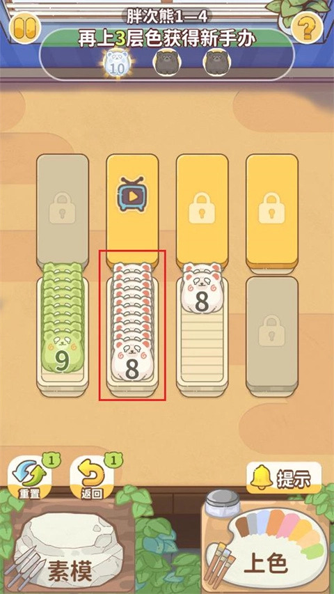 当游戏场景中存在完全填满且内部手办款式相同的容器时,点击上色功能即可对容器内的手办进行等级提升操作。