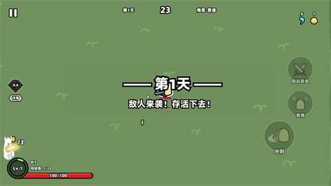 在界面的右侧区域,你能够对自动攻击与冲刺这两项功能进行配置,一旦计时结束,就能顺利完成当前关卡。