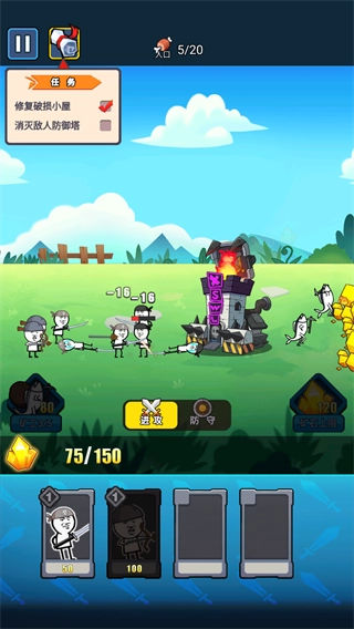正在进行采矿作业,收集到的矿石能够用来生产兵力。这里推荐一款类似的游戏《火柴人战争遗产》,它采用了相同的核心操作逻辑,区别主要体现在画风上——以滑稽幽默的风格为基调,搭配融入网络流行用语的表情包元素,让整体视觉效果显得格外诙谐有趣。在玩法层面,该游戏延续了经典的策略塔防机制,玩家需要通过推进采矿进度来获取资源,进而生产各类士兵。
