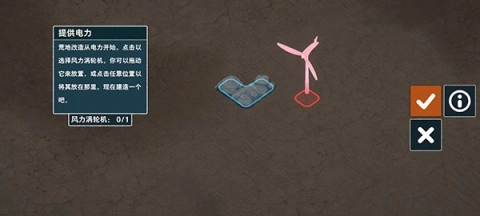 开始着手建造,摆放风车来获取电力,要保证选定的区域能够放置建筑。