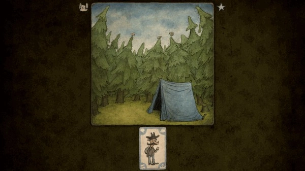 进入游戏后,我们会出现在自己的帐篷前,下方有一张人物卡片,拖动它就能把人物放到场景里。