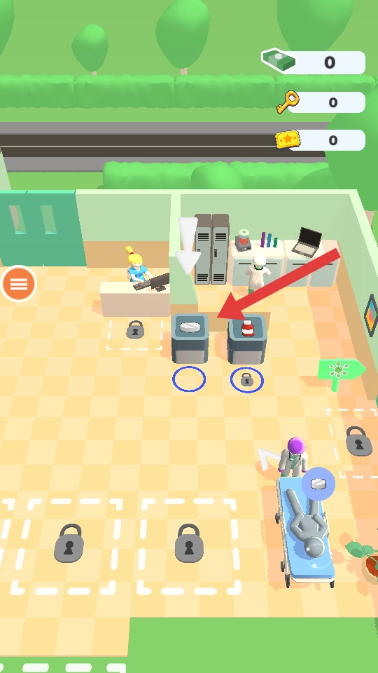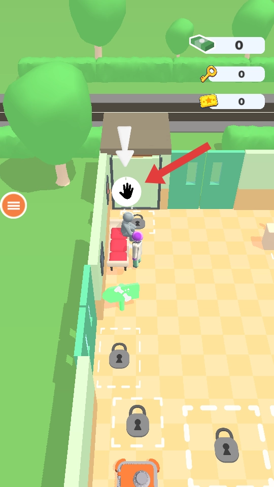 按照箭头的指引灵活操控角色,避开那些无关的区域;通过点击互动来解锁诊室锁柜这类场景元素,同时收集钞票。