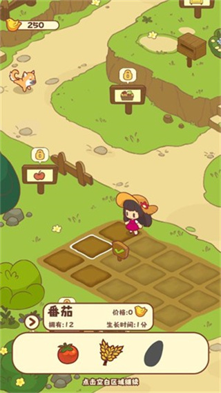 2完成新手指引后,你就能自由行动了。点击土地,就能种植各类作物。