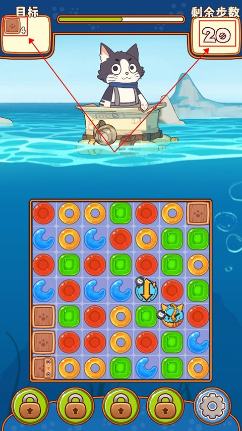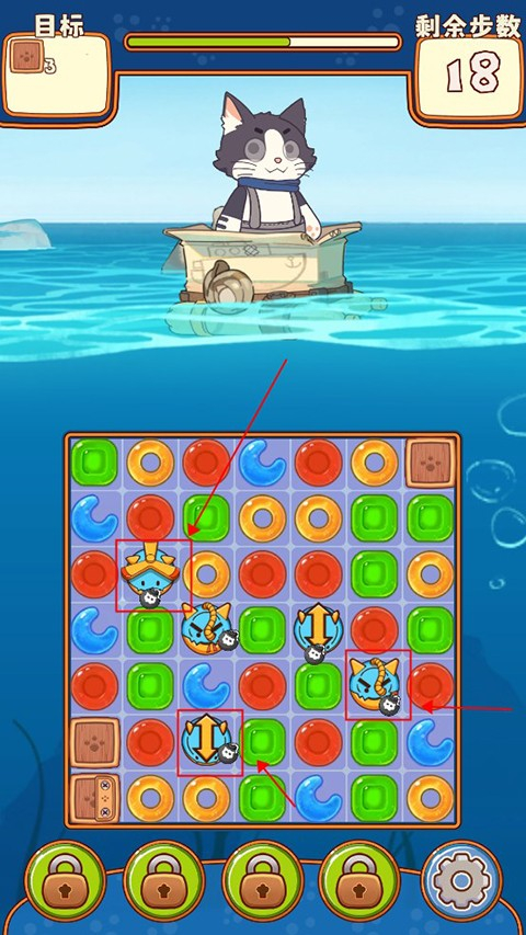 滑动指尖即可完成三消,简单易上手,操作手感畅快十足~随着关卡逐步解锁,丰富多样的障碍与技能道具将一一呈现,快和可爱的猫猫一同轻松出海,畅享游戏乐趣吧!
