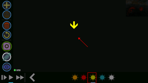 3接下来我们要生成一颗绕着你的恒星公转的行星。请选用气体行星绘制工具,然后用手指在操作区域滑动,描绘出一条邻近恒星的轨迹。行星会在该轨迹的起点处生成,其初始公转速度将由这条轨迹的走向来确定。