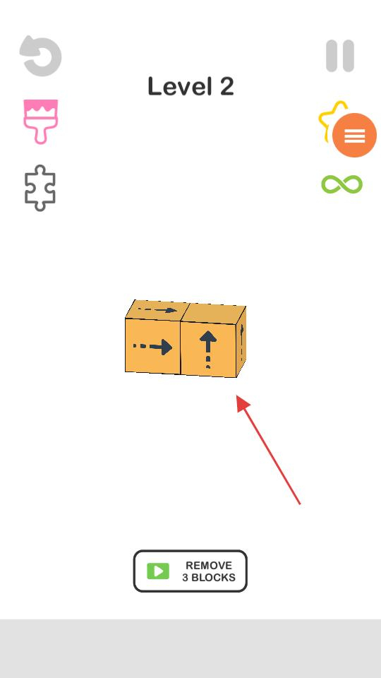 3、进入第二关界面后,会看到两个带有箭头的方块。按照箭头所指的方向,依次点击这些方块,使它们沿着箭头方向移动,以此推进第二关的游戏进程。