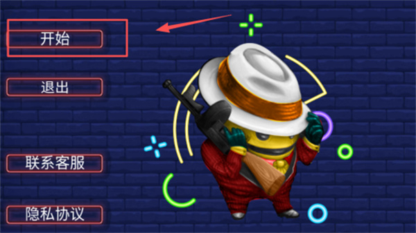 1进入游戏主界面后,点击左侧带红色箭头标识的启动按钮就能开启挑战,右侧的设置选项里包含了退出游戏、联系客服以及查看隐私条款的功能。
