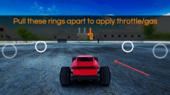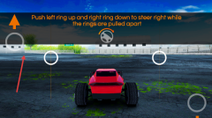 1、按提示拉开左右环形按键,给红色赛车施加油门。