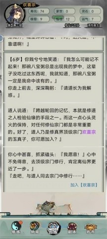 3、玩家能够选择加入青云宗、欢喜宗与华严宗,不一样的宗门会带领玩家踏上完全不同的修仙旅程。