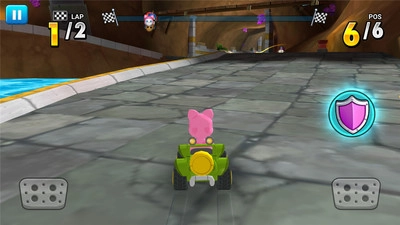 这款游戏的操作相比其他赛车游戏要简单不少,只有左右两个方向键和一个道具使用键,对手机玩家相当友好。不过,正因为只有两个方向键,游戏把转弯设定成了默认漂移模式,这让这款仅靠两个键操作的游戏也极具技术挑战性,尤其是那些狭窄的赛道,跑起来确实难度不小。