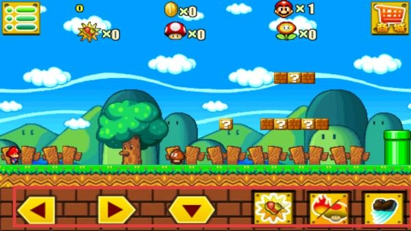 2在这款游戏里,玩家需要操控角色在充满复古像素风的场景中展开探索,途中要留意收集散落的闪亮金币与特殊蘑菇,同时得灵活避开四处游荡的敌人和各种阻碍前进的物体。屏幕底部设有用于移动的方向控制键和释放能力的功能按钮,方便玩家随时调整角色的行动。