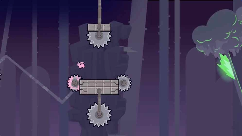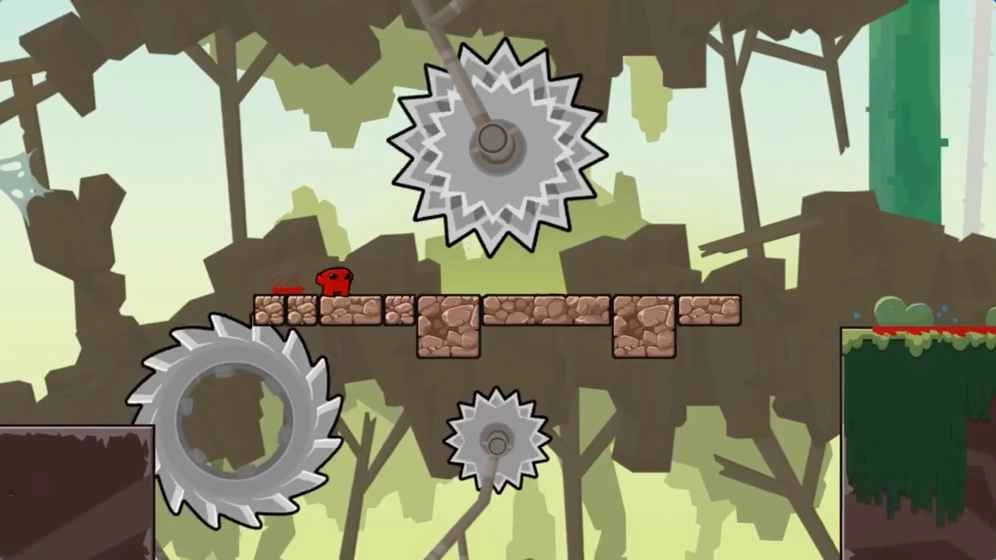 《超级食肉男孩》精准承继了平台跳跃游戏的核心玩法,像最基础的上下腾挪,还得熟练运用高阶的冲刺跳(二段跳)技巧,搭配各类精巧复杂的齿轮机关与凶悍的巨型BOSS,当鲜血泼洒之际,正是肉肉哥惨遭虐杀的见证。