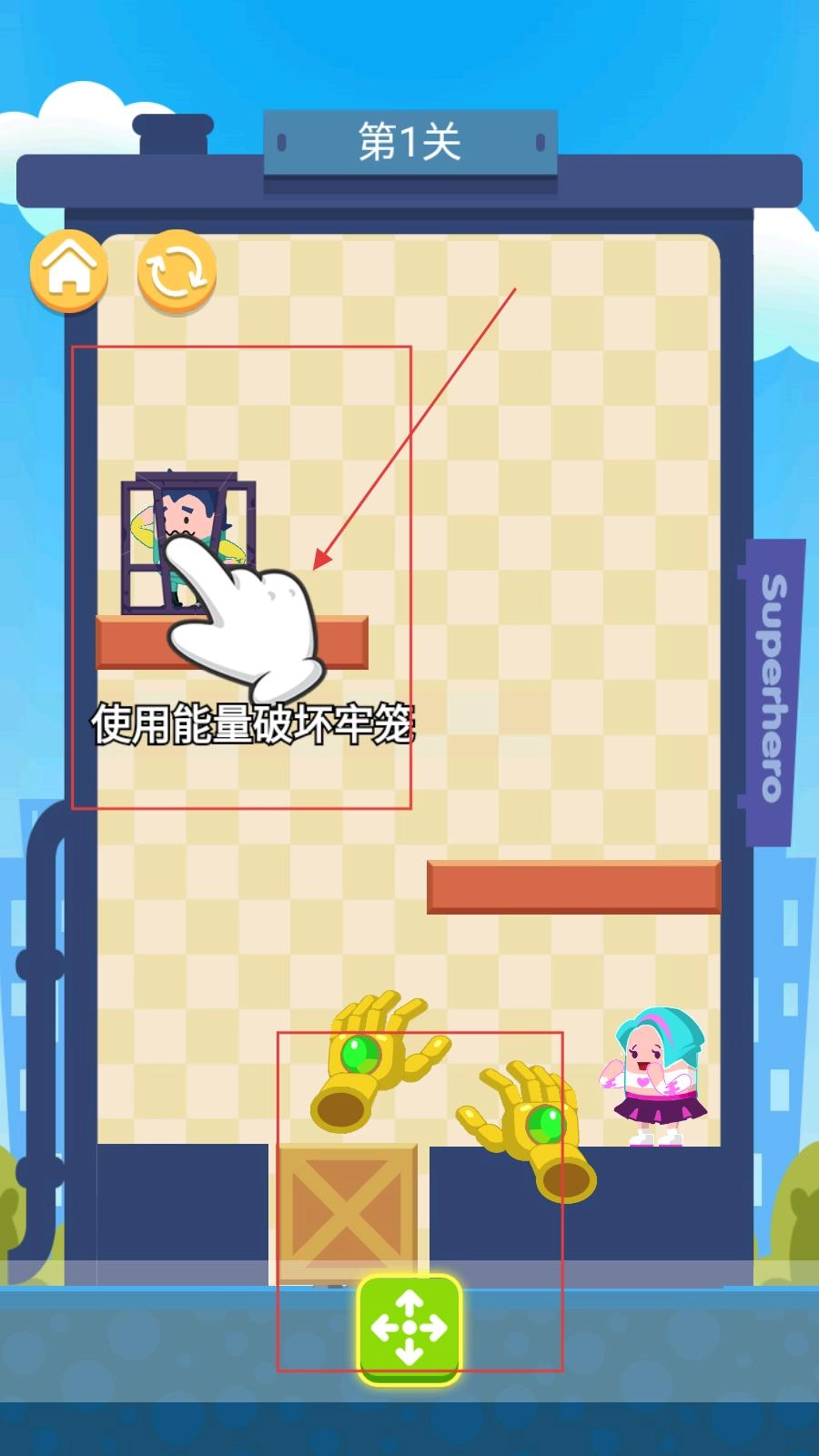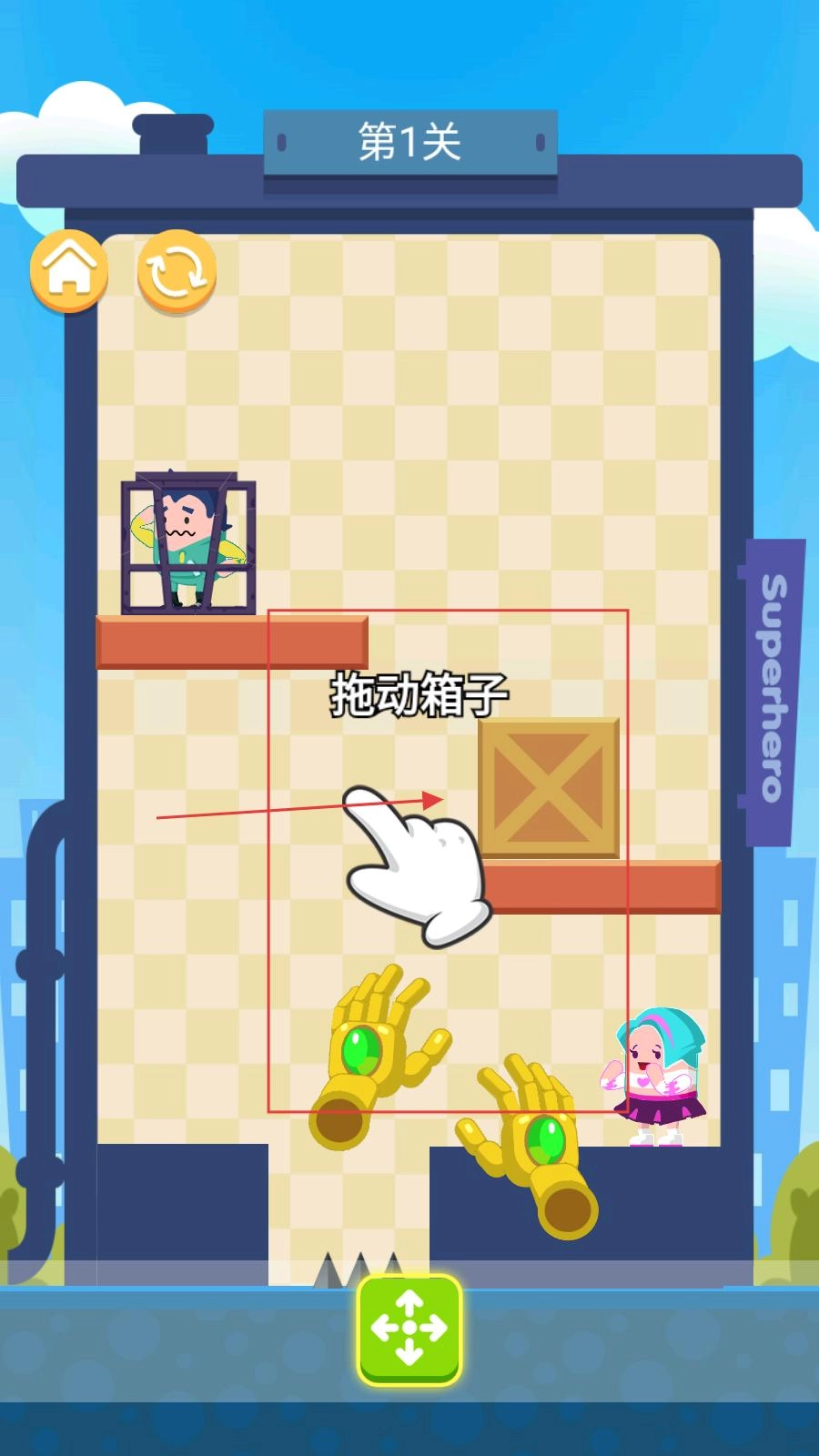 2、玩家进入关卡1后,需要拖动箱子到合适位置搭建路径来救助角色,以此为后续操作做好准备。