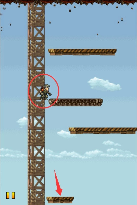 1、左右滑动屏幕可操控角色横向移动,需精准调整其落点,使其与下方平台对齐。
