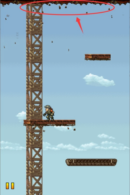 3、在跳跃过程中要时刻留意头顶移动的机械装置,一旦触碰到障碍物,当前关卡就会立刻结束。