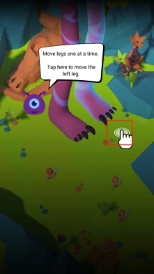 1按照教程指引,我们点击右侧的绿色圆形图标,以此操控怪物左腿的动作,正式开启驾驭巨型怪物的关卡挑战。