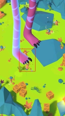2操控怪物的两条腿交替移动,让它用巨大的脚掌去踩地上的小人对手,通过这样的碾压方式来增加消灭敌人的数量,从而推动关卡继续进行。
