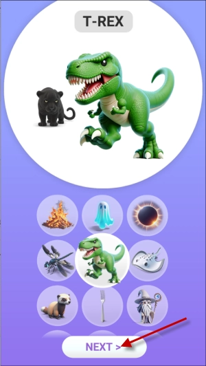 我们选择黑豹作为父本,接着挑选恐龙作为母本,之后点击NEXT按钮。