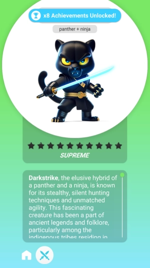 接着回到主界面,按照刚才的方法再创建两个融合生物,这样才能开启战斗玩法。这次我们用黑豹和忍者合成出了满星生物!