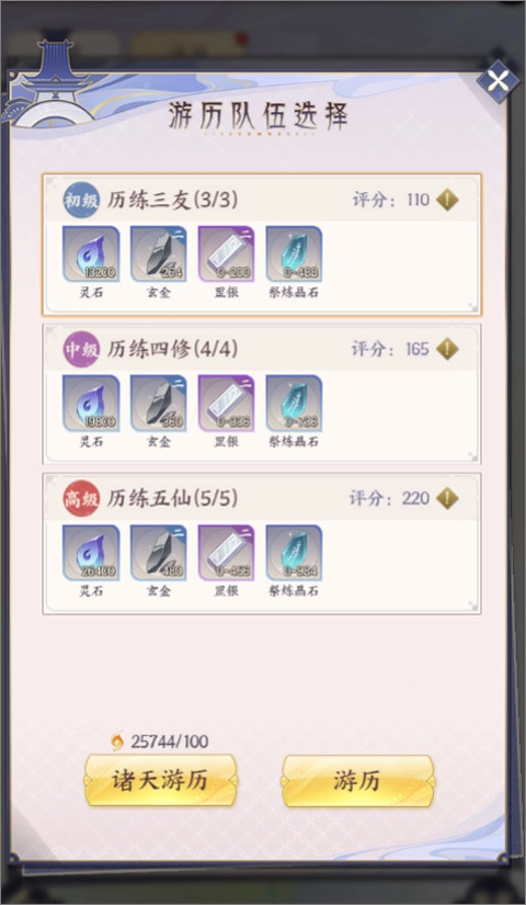 与结识的道友进行万仙游历,游历归来可获得祭炼晶石