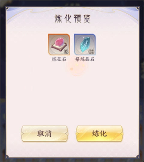 紫色、橙色法宝进行炼化时,可获得法宝炼星石