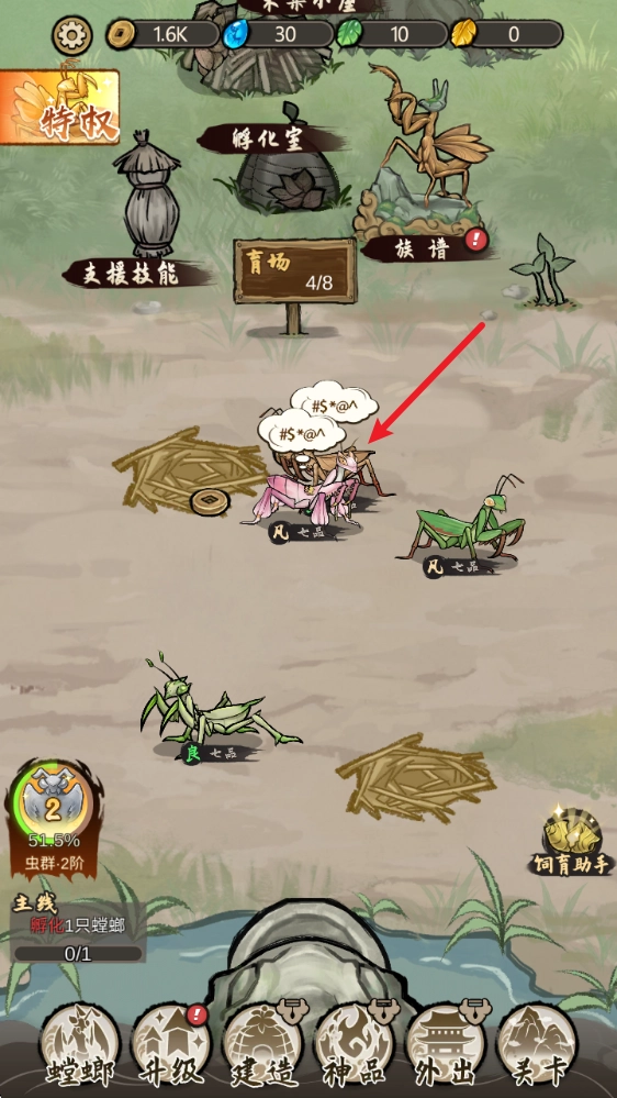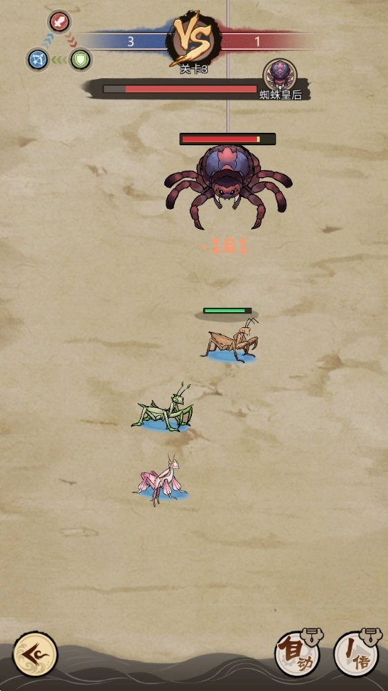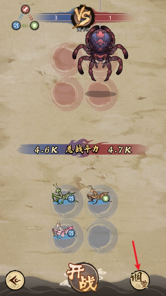 得到新的螳螂后,我们就去关卡战斗,战斗前能自由搭配自己的阵容。
